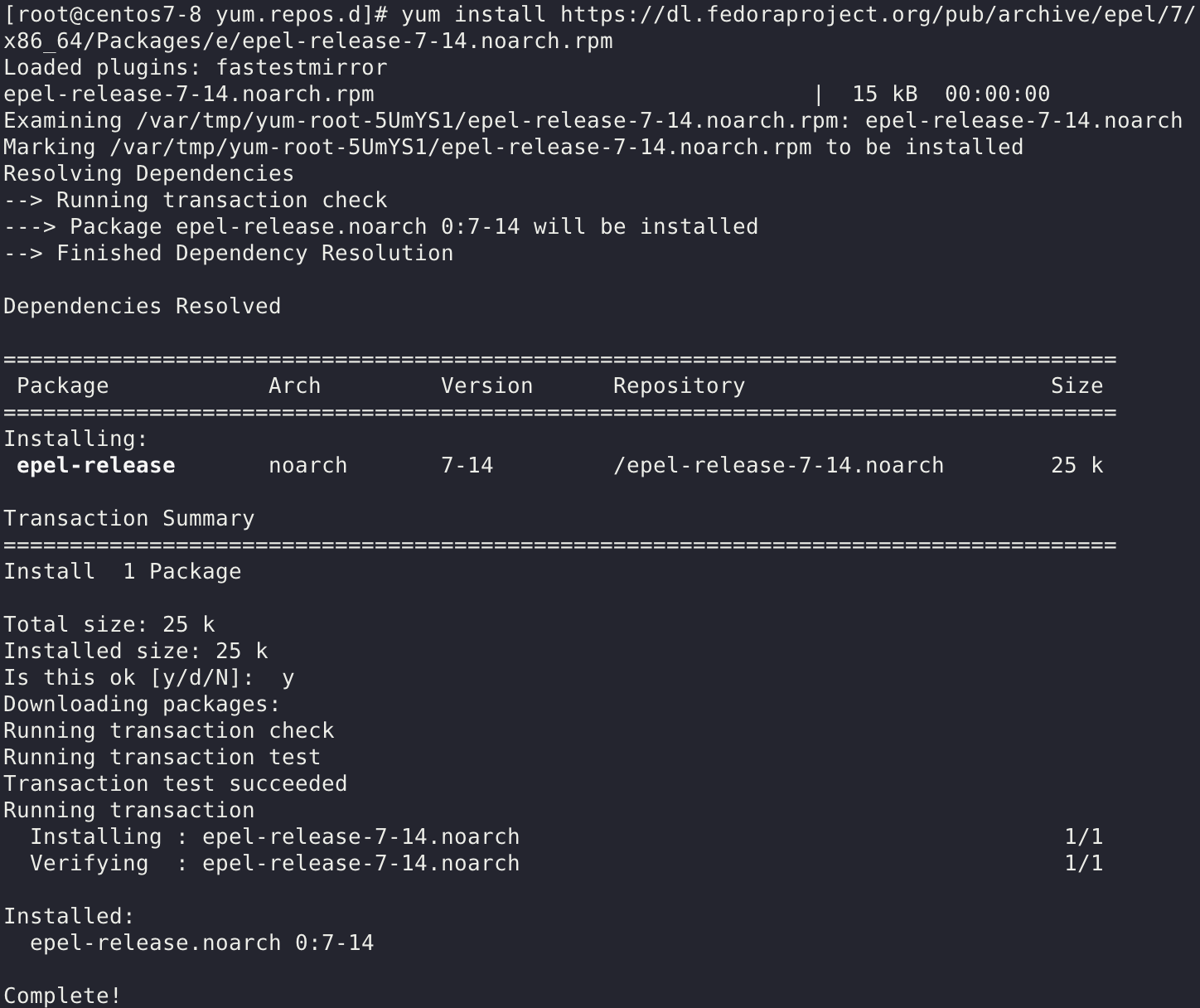 yum install https://dl.fedoraproject.org/pub/archive/epel/7/x86_64/Packages/e/epel-release-7-14.noarch.rpm