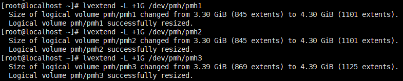 lvextend -L +1G /dev/pmh/pmh3
