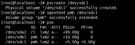 vgextend pmh /dev/sdc1