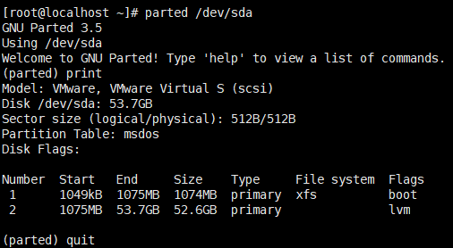 mklabel 명령은 기존 파티션 테이블을 지우므로 사용 시 주의해야 한다.