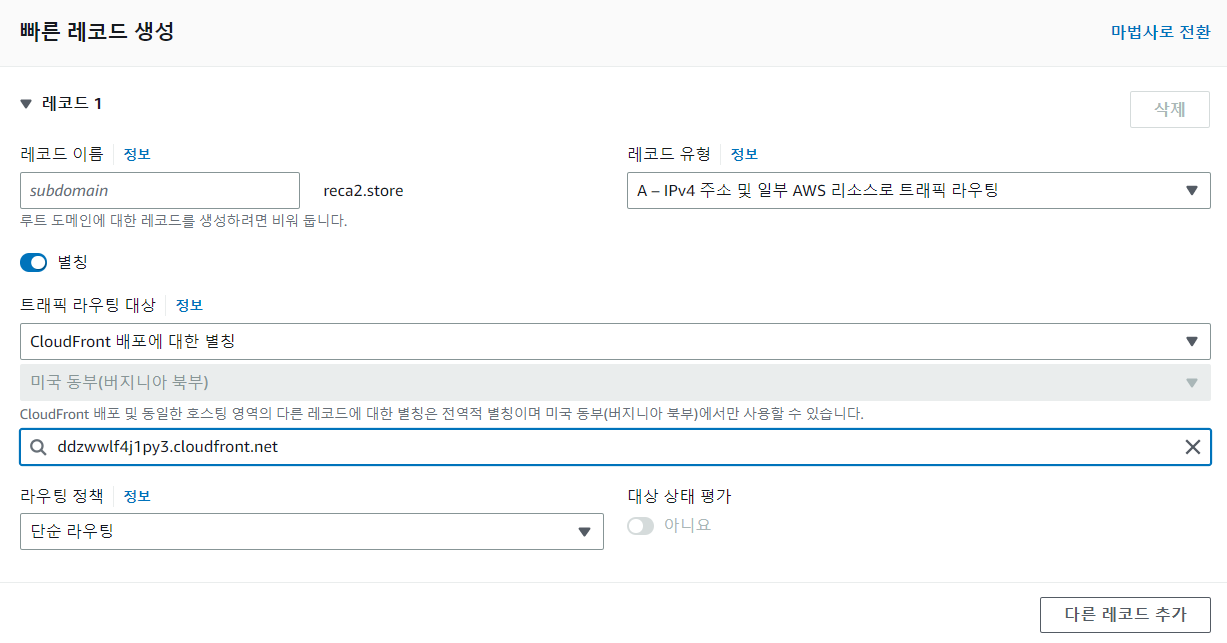 CloudFront를 Route 53 레코드에 추가했는지 확인.