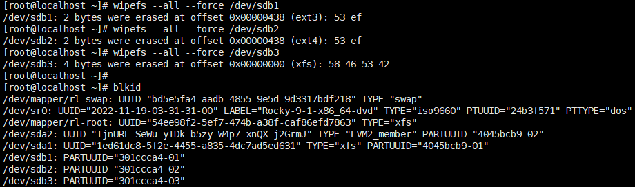 초기화 순서는 분할과 반대로 진행합니다. 마운트 해제 → 파일시스템 초기화 → LV 삭제 → VG 삭제 → PV 삭제 → 파티셔닝 초기화 1. 마운트 해제 마운트 해제 명령어는 umount 파일명 입니다. umount /lv1 /lv2 /lv3 2. 파일시스템 초기화 파일시스템 초기화 명령어는 wipefs --all --force LV경로 입니다. 마지막에는 blkid 명령어로 파일시스템 상태를 재확인합니다. wipefs --all --force /dev/pmh/pmh1 wipefs --all --force /dev/pmh/pmh2 wipefs --all --force /dev/pmh/pmh3 blkid 3. LV(Logical Volume) 삭제 LV 삭제 명령어는 lvremove LV경로 입니다. 정..